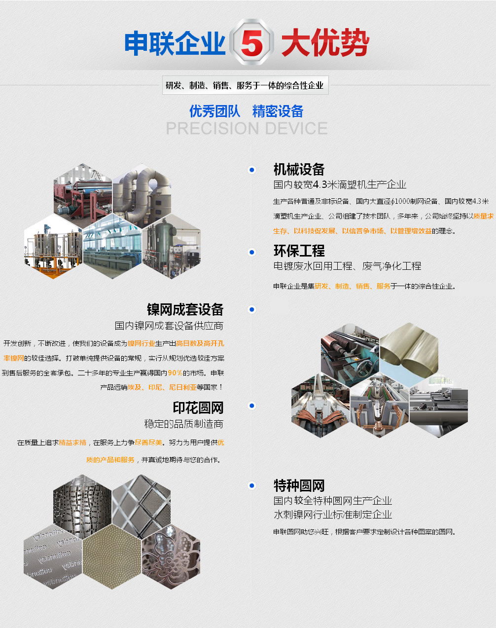 主要產(chǎn)品:機械設(shè)備、環(huán)保工程、鎳網(wǎng)生產(chǎn)成套設(shè)備、印染鎳網(wǎng)、特種鎳網(wǎng)等系列產(chǎn)品的研發(fā)、制造、銷售、服務(wù)于一體的綜合性企業(yè)。